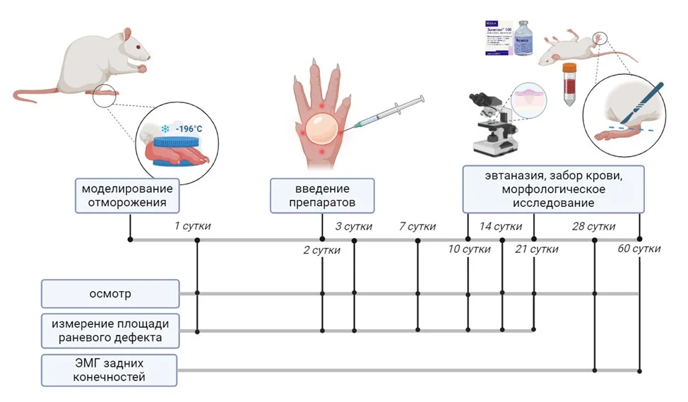 Assessment of the severity of delayed changes in the state of the neuromuscular system during correction of local cold injury of III-IV degree with pCMV-VEGF165 plasmid preparation in an experiment / D. A. Kostina, O. V. Shcheblykina, A. A. Peresypkina [et al.] // Research Results in Pharmacology. – 2025. – Vol. 11, No. 1. – P. 90-98. – DOI 10.18413/rrpharmacology.l1.550.